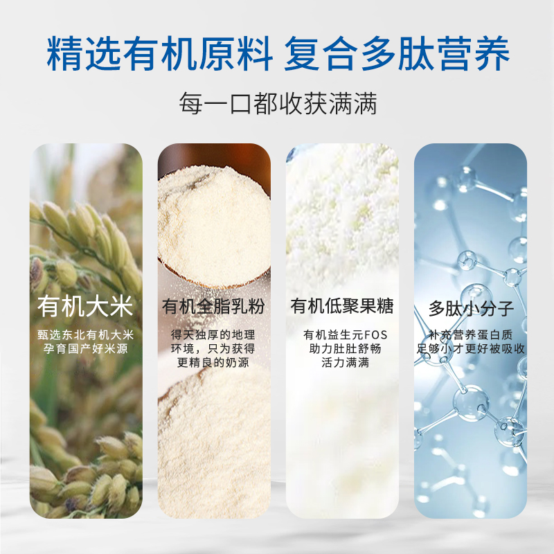 精選有機(jī)原料,復(fù)合多肽營養(yǎng),四大食品權(quán)威認(rèn)證品質(zhì)要求比媽媽更苛刻