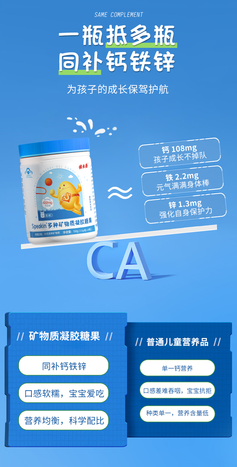 一瓶同補鈣鐵鋅,藍帽認證為孩子的成長保駕護航