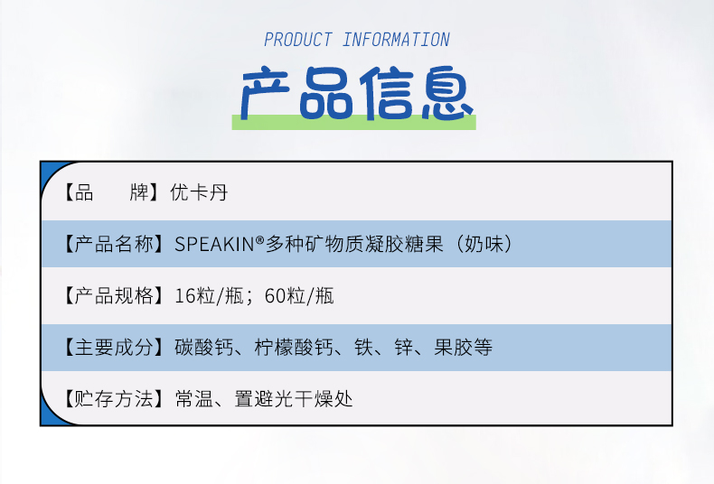名稱:優卡丹Speakin多種礦物質凝膠糖果(奶味)