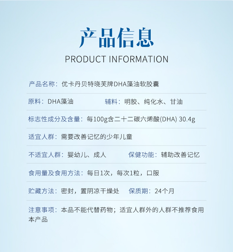 產品名稱:優卡丹貝特曉芙牌DHA藻油軟膠囊