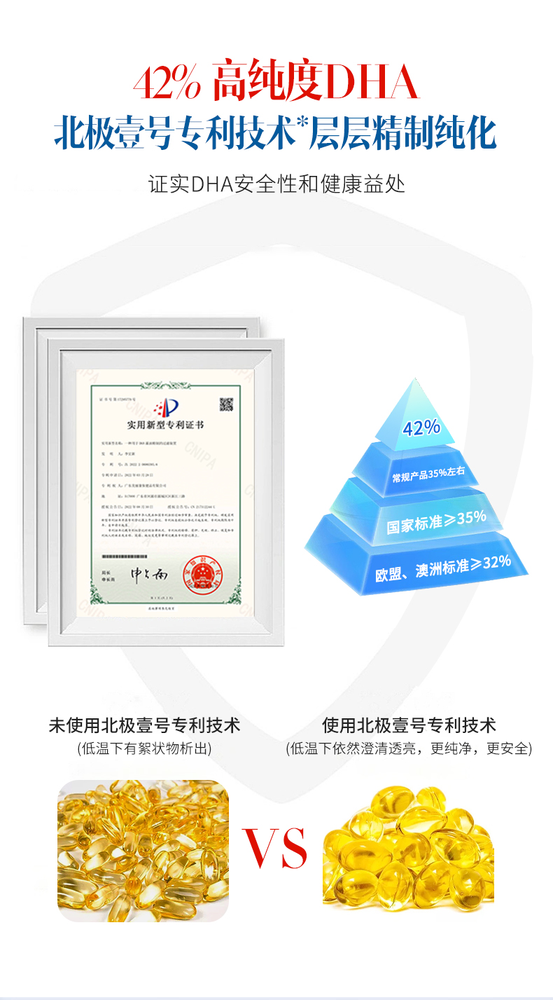 標志性成分及含量:每100g含二十二碳六烯酸(DHA) 30.4g