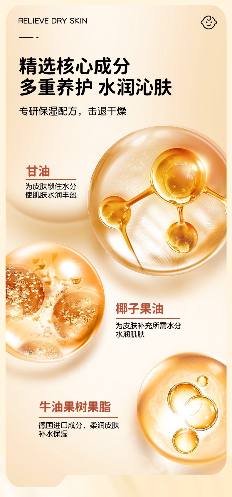 注意:請置于兒童無法觸及處;避免接觸眼睛,如不慎入眼,請用清水沖洗干凈,使用過程中如有不適請清洗干凈并停止使用;皮膚如有破損或感染請勿使用。