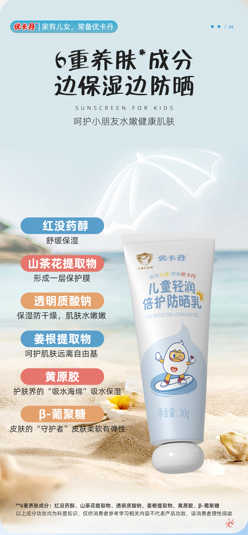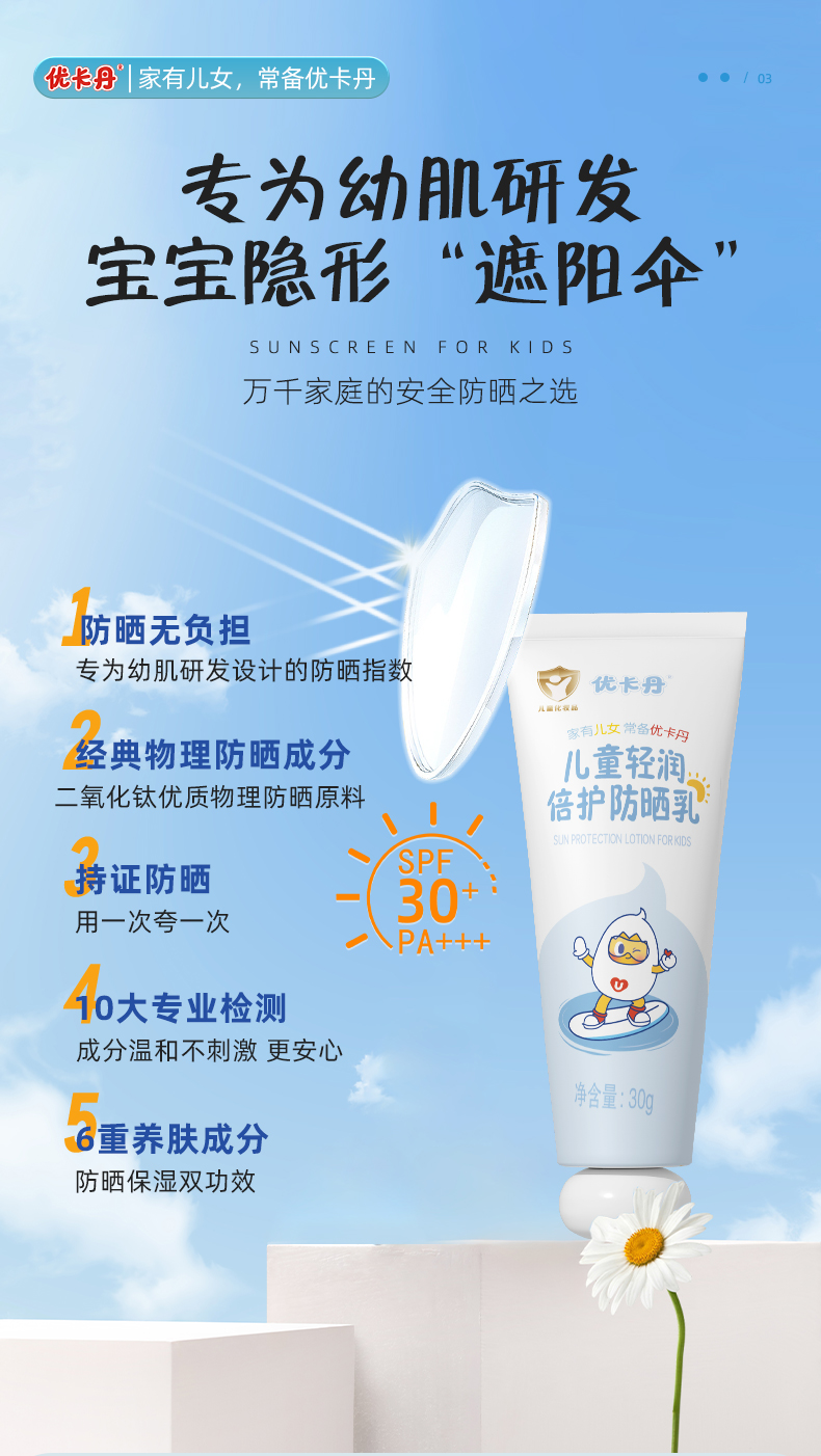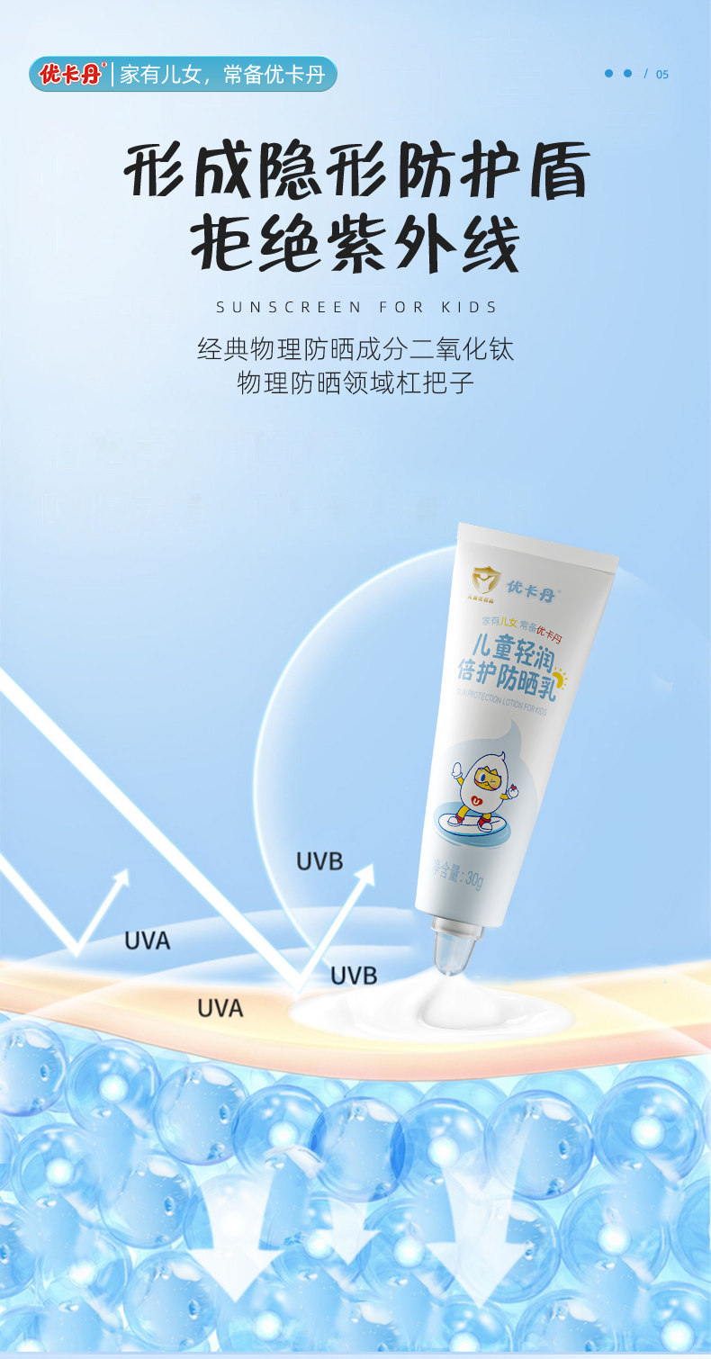 【產品名稱】優(yōu)卡丹兒童輕潤倍護防曬乳 SPF30PA+ + +