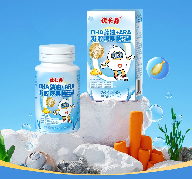 優(yōu)卡丹DHA藻油+ARA凝膠糖果│60粒大容量,守護(hù)孩子超長(zhǎng)假期
